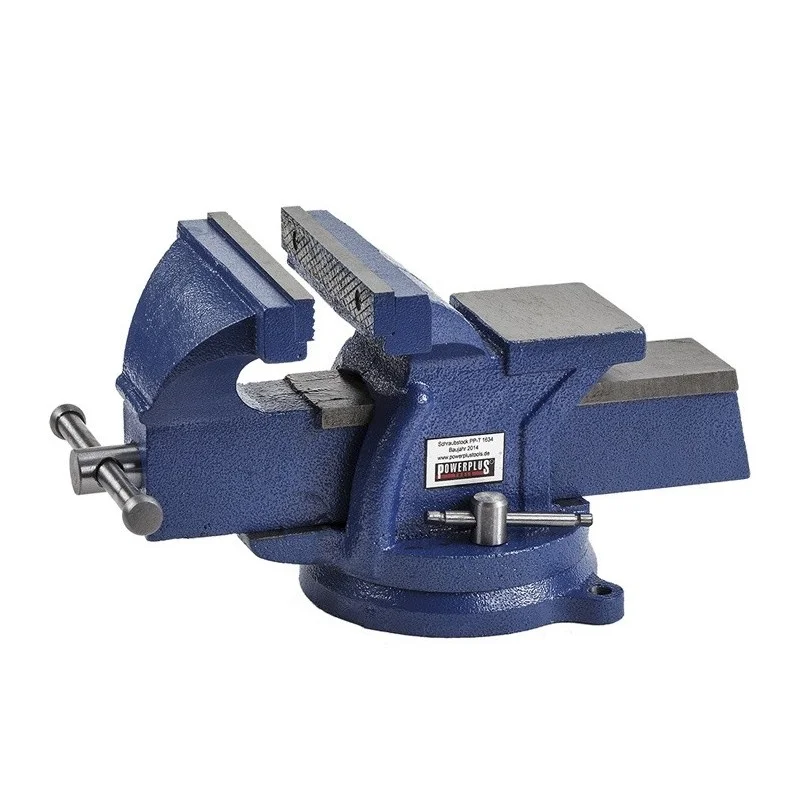 Degelijke draaibare bankschroef met een bekbreedte van 150 mm.