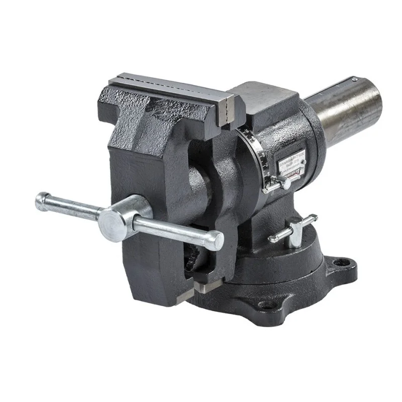 Multifunctionele en draaibare bankschroef met een bekbreedte van 100 mm.