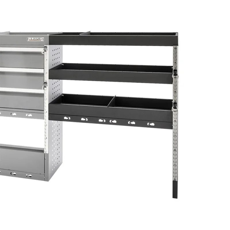 Aan de kopse kant van deze kast zijn vierkante gaten van 10 x 10 mm. gestanst om gewicht te besparen, onze Powerplustools haken voor de gereedschapsborden zijn geschikt voor 12 x 12 mm. gaten en passen niet bij deze kast.