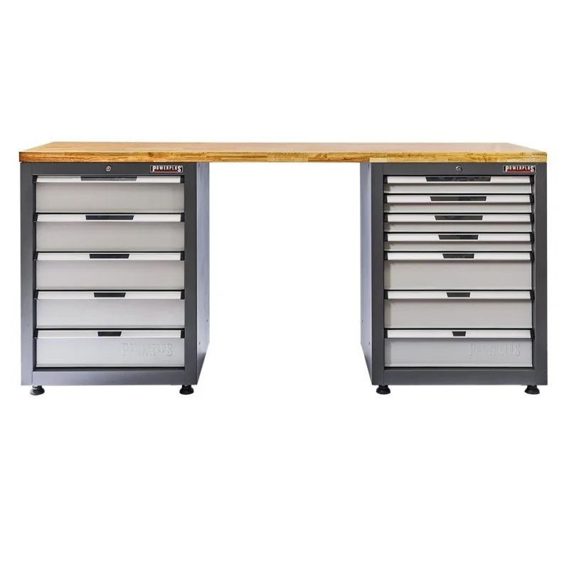 Werkbank Elite-Line 210 x 55,5 x 96 cm. met 12 laden en hardhouten blad.