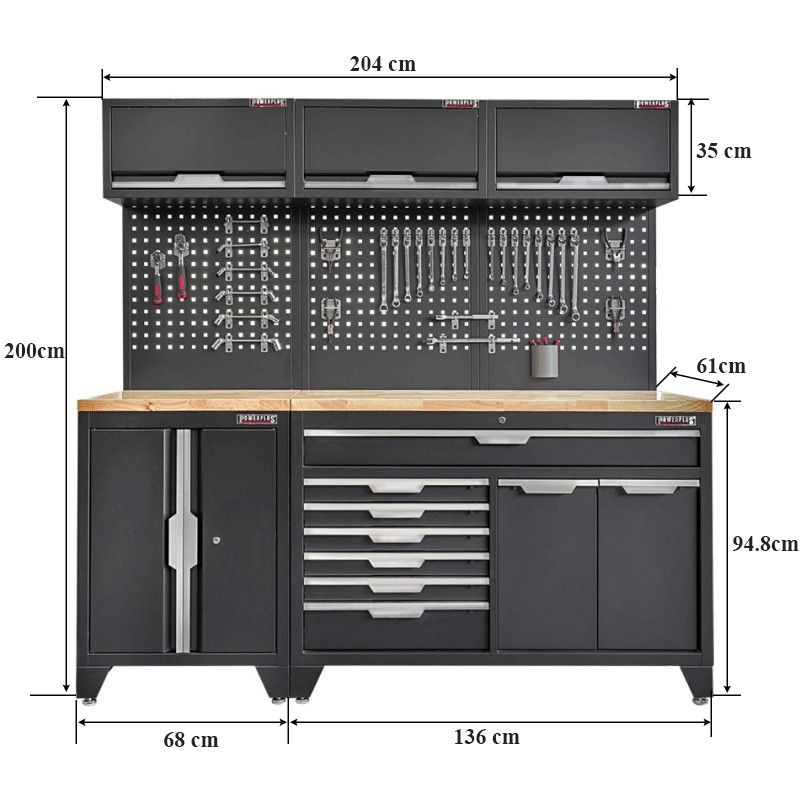 (Levering zonder de afgebeelde decoratiestukken, gereedschapshaken en gereedschappen).