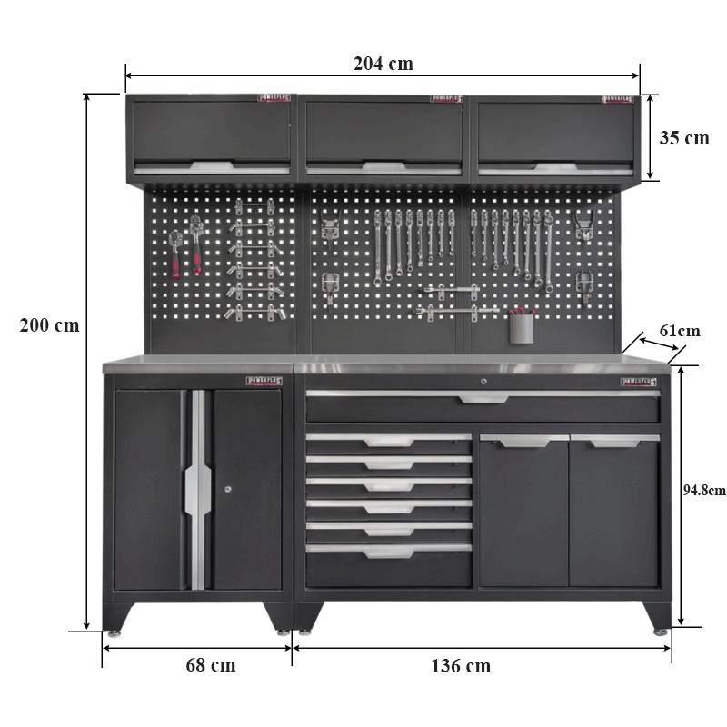 (Levering zonder de afgebeelde decoratiestukken, gereedschapshaken en gereedschappen).