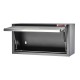 Drie matzwarte wandkasten met omhoog draaiende klep met twee gasveren. Deze hangkasten worden geleverd inclusief bevestigingsmateriaal voor montage aan de gereedschapsborden