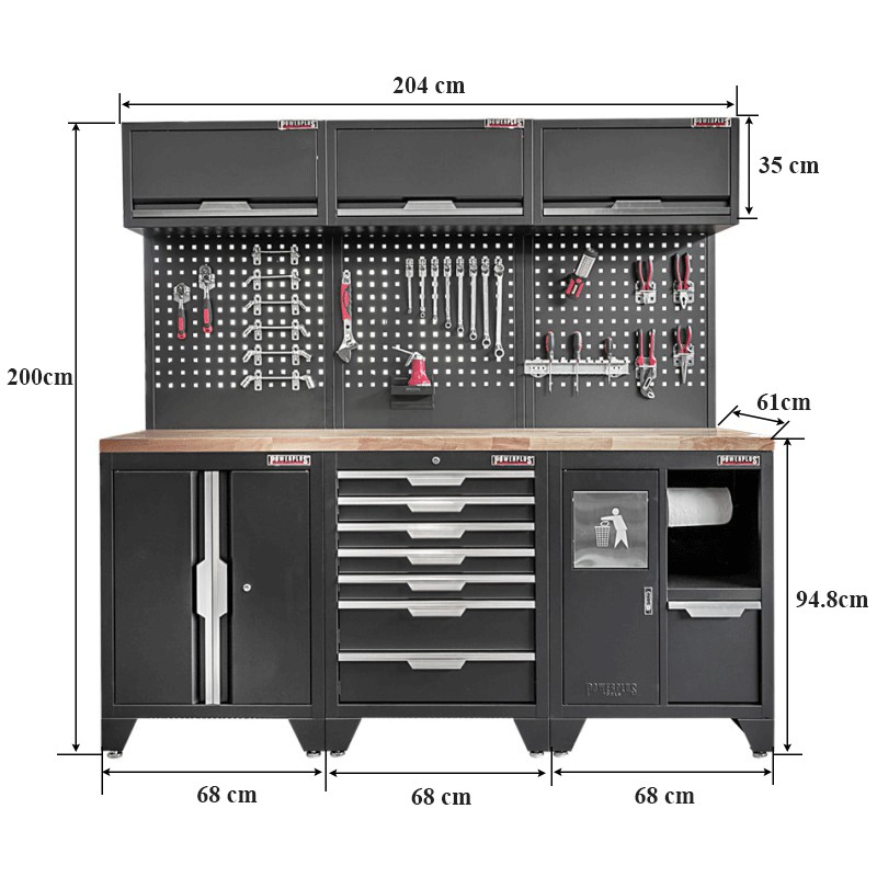 (Levering zonder de afgebeelde decoratiestukken, gereedschapshaken en gereedschappen).