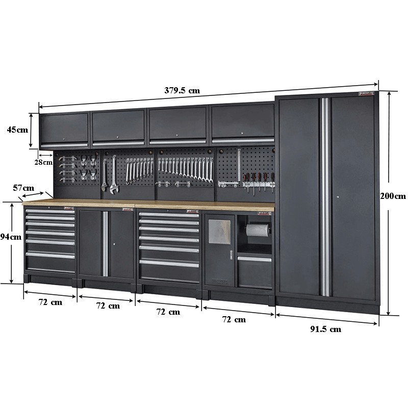 Plus 1 x werkplaatskast 91,5 cm breed 61 cm diep en 200 cm hoog ( artikelcode PP-T 1784S ).