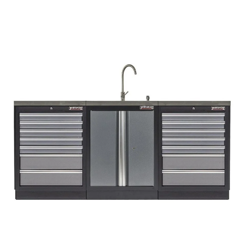 Plus Werkplaatskast met 2 deuren inclusief zeeppomp, RVS wasbak en RVS kraan.