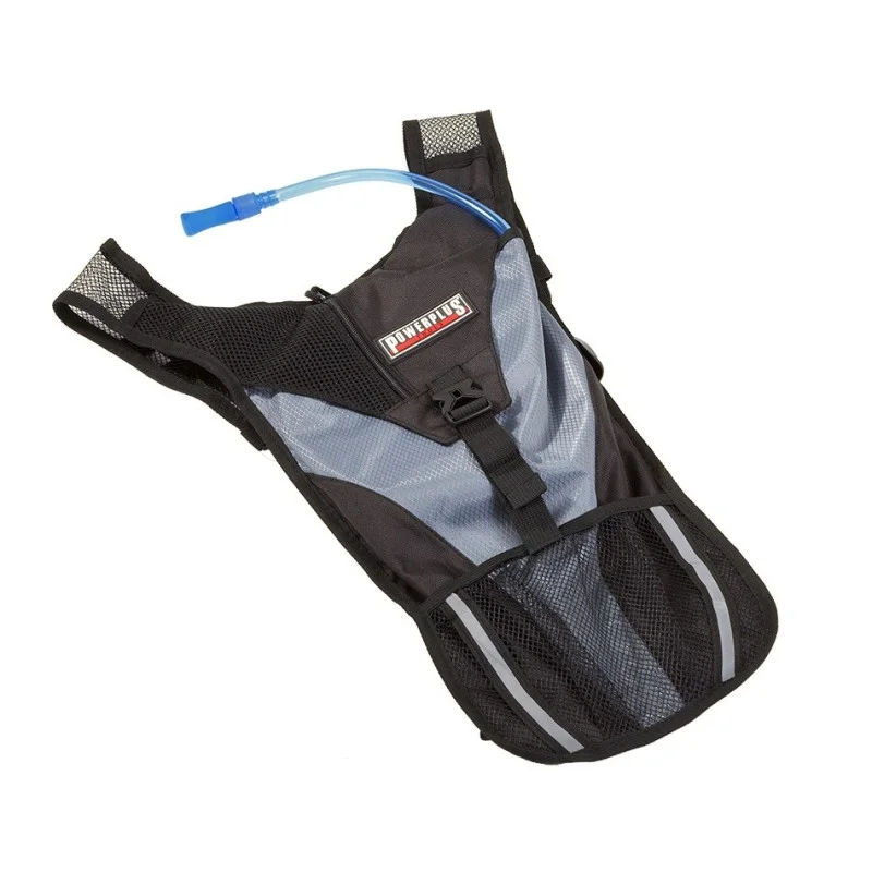 Sterke polyester rugzak met 2,5 liter waterreservoir.