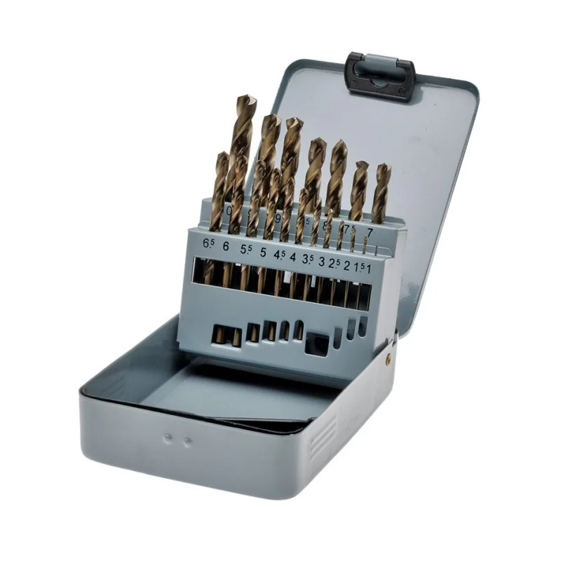 Borenset 19 stuks HSS M35 Cobalt (RVS boor) in metalen box. 1 t-m 10 mm.