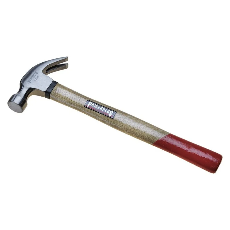 Traditionele klauwhamer met gelakte houten steel, een multifunctioneel stuk gereedschap voor zowel timmerwerk als montage en demontage.