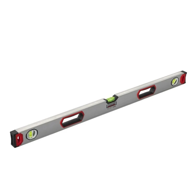 Aluminium blokwaterpas 100 x 6,5 x 3 cm. met 3 libellen en schokabsorberende einddoppen.