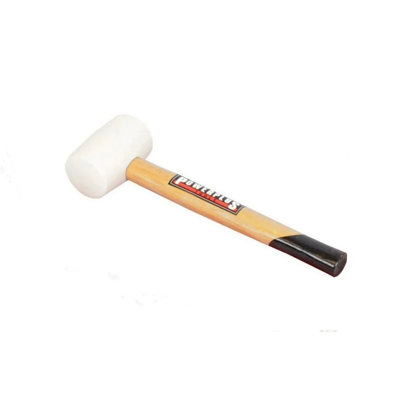 Rubberen hamer met houten steel.