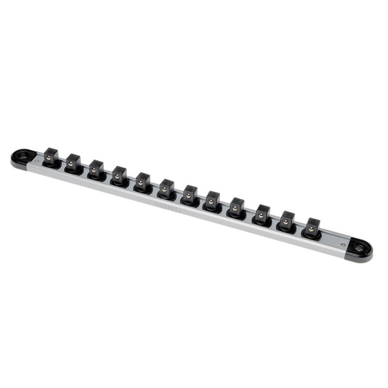 Doppenhouder / doppenrail voorzien van een krachtige magneetstrip over de gehele lengte die op elke stalen ondergrond geplaatst kan worden. O.a. te gebruiken op gereedschapsborden en gereedschapswagens. Geschikt voor 16 doppen. Opname: 1/4". Afmetingen: 46 x 3 cm. Wordt geleverd zonder afgebeelde doppen.