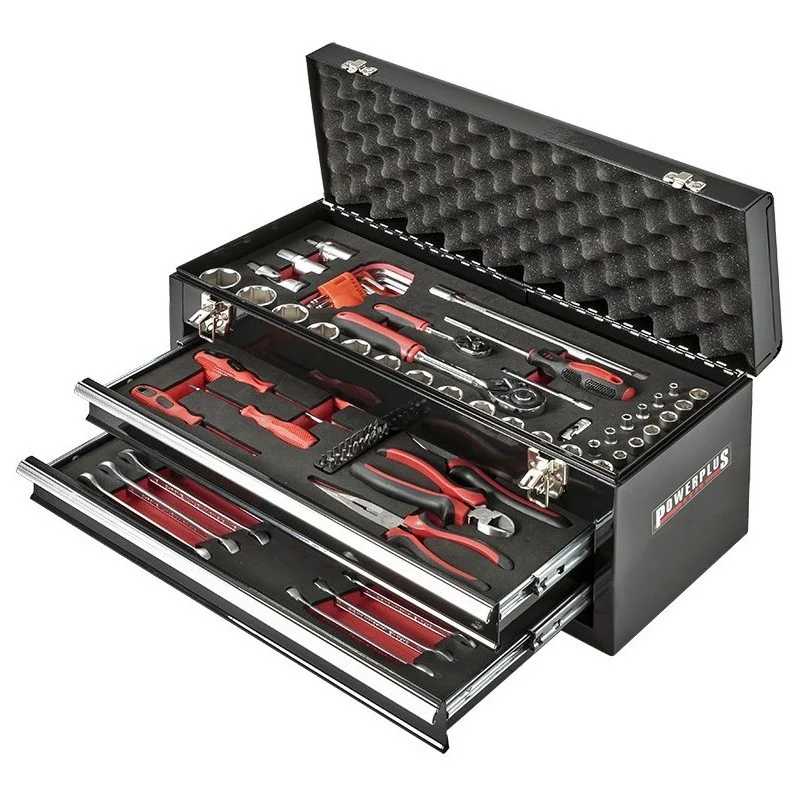 Een professionele gereedschapskist met daarin 84 gereedschappen met levenslange garantie in overzichtelijke modules. De gereedschappen zijn gemaakt van Chrome Vanadium met evt. een breukbestendig kunststof handvat, de modules zijn gemaakt van Ethyleen Vinyl Avetaat ( EVA foam mat ) dit is een zacht, flexibel, taai, UV- en weerbestendig, lichtgewicht en slijtvast materiaal en speciaal ontwikkeld voor dit doel. Voordeel van EVA foam is dat zowel de buitenkant als de binnenkant van het zelfde materiaal is gemaakt, als het materiaal evt. zou scheuren neemt ook de binnenkant geen vocht op.