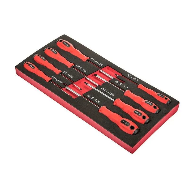 Schroevendraaierset 8 delen. – set schroevendraaiers in soft foam module