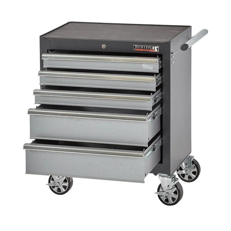 Een Powerplustools 5 laden gereedschapswagen met kogelgelagerde laden en ergonomisch gevormde ovale duwboom voor jarenlang sleutelplezier, uit voorraad leverbaar en binnen 1 werkdag bij u thuis afgeleverd.