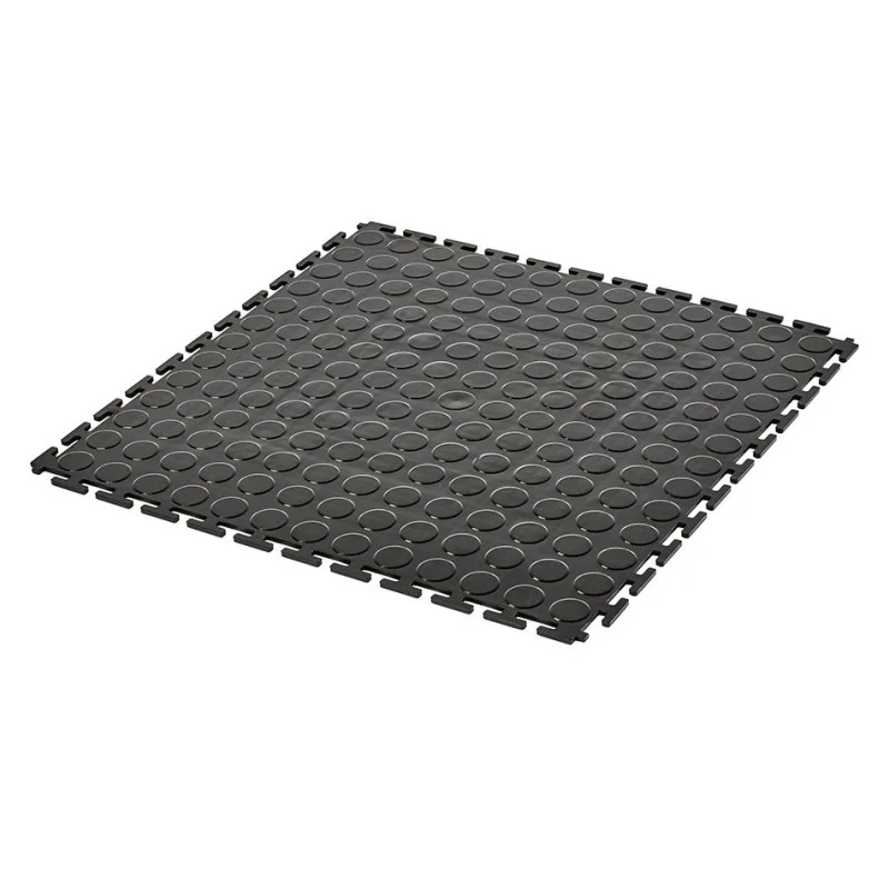PVC kliktegel zwart 500 x 500 x 6 mm. - Industriële werkplaatstegel met ronde noppen