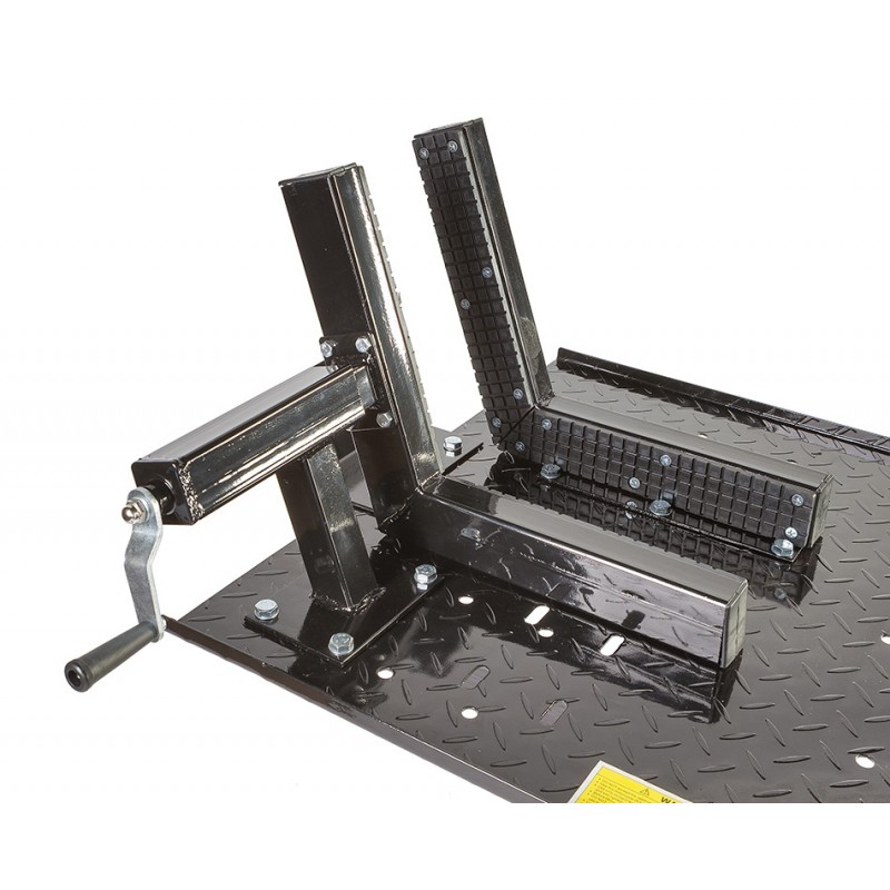 Inrijwielklem / parkeer stander voor het veilig vervoeren van motorfietsen. Met gepatenteerd kiep/knijpsysteem. Kan eenvoudig op aanhanger of in voertuig worden gemonteerd. Geschikt voor bandenbreedte van 110 mm tot 150 mm en wielen van 16" tot en met 19". Kleur zwart, tevens in het rood leverbaar