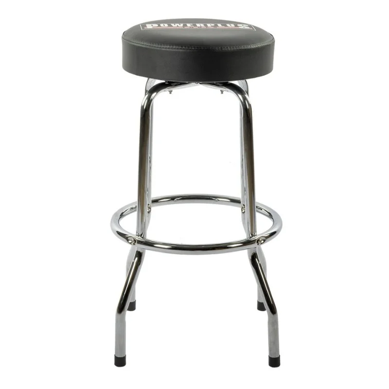 Barkruk – gitaarkruk 76 cm. hoog met voetsteun en Powerplustools logo.