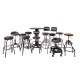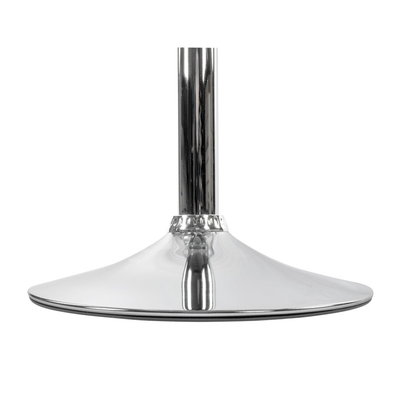 Materiaal: verchroomd stalen frame – MDF zitting Ø 36 cm. x 8 cm. omkleed met schuimrubber en zwart skai kunstleer, ronde verchroomde poot van Ø 40 cm.