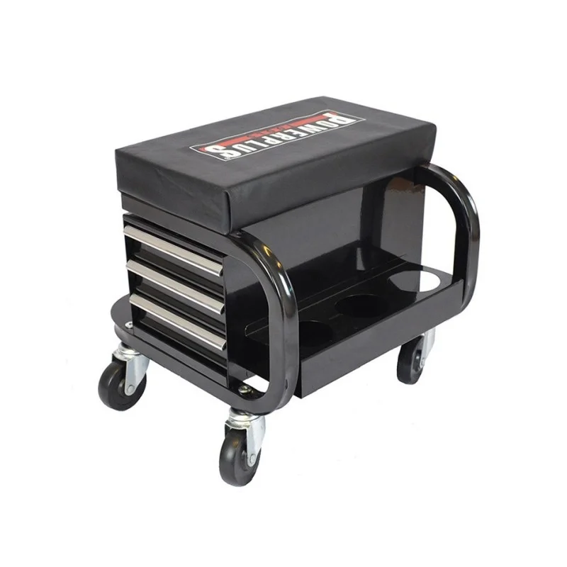 Comfortabel uw auto, motorfiets of fiets poetsen, laswerkzaamheden uitvoeren of aan een voertuig sleutelen met deze verrijdbare werkplaatskruk.