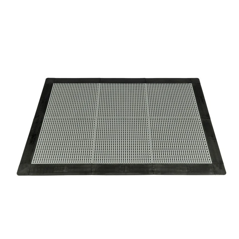 Dit type mat is ook geschikt voor gebruik in natte ruimtes en is leverbaar in de kleuren zwart en grijs. De bijpassende oprijranden en hoekstukjes leveren we in de kleuren zwart, grijs, geel en rood.