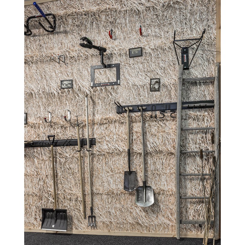 Een effectieve manier om overzichtelijk en flexibel uw (tuin) gereedschap op te hangen met deze dubbele wandhaak van verzinkt materiaal met daaroverheen een hoogwaardige poedercoating en beschermende zachte coating van Ø 12 mm.