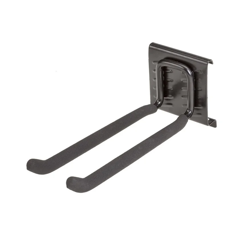 Een effectieve manier om ruimtebesparend uw (tuin)gereedschap op te bergen met deze dubbele wandhaak van verzinkt metaal met hoogwaardige kwaliteit poedercoating en een beschermende zachte rubber coating van Ø 10 mm.
