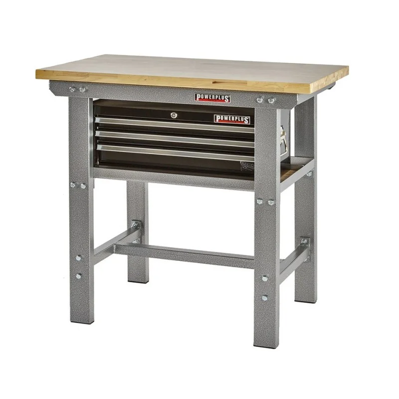 Topkwaliteit werkbank van Powerplustools met oerdegelijk ijzeren frame en poten van dikwandig kokerprofiel (80 x 40 mm.) Deze professionele zware werkbank wordt geleverd inclusief een glad gelakt vingerlas verlijmd hardhouten blad van 3,6 cm. dik. Een ideale stalen werkbank voor school, autogarage, werkplaats, particulier. Deze industrieel inzetbare werkbank is verkrijgbaar in de kleuren rood en zwart. De hoogwaardige poedercoating is UV bestendig en het frame wordt samen geschroefd met gegalvaniseerde bouten en moeren (boutkwaliteit 4.8 )