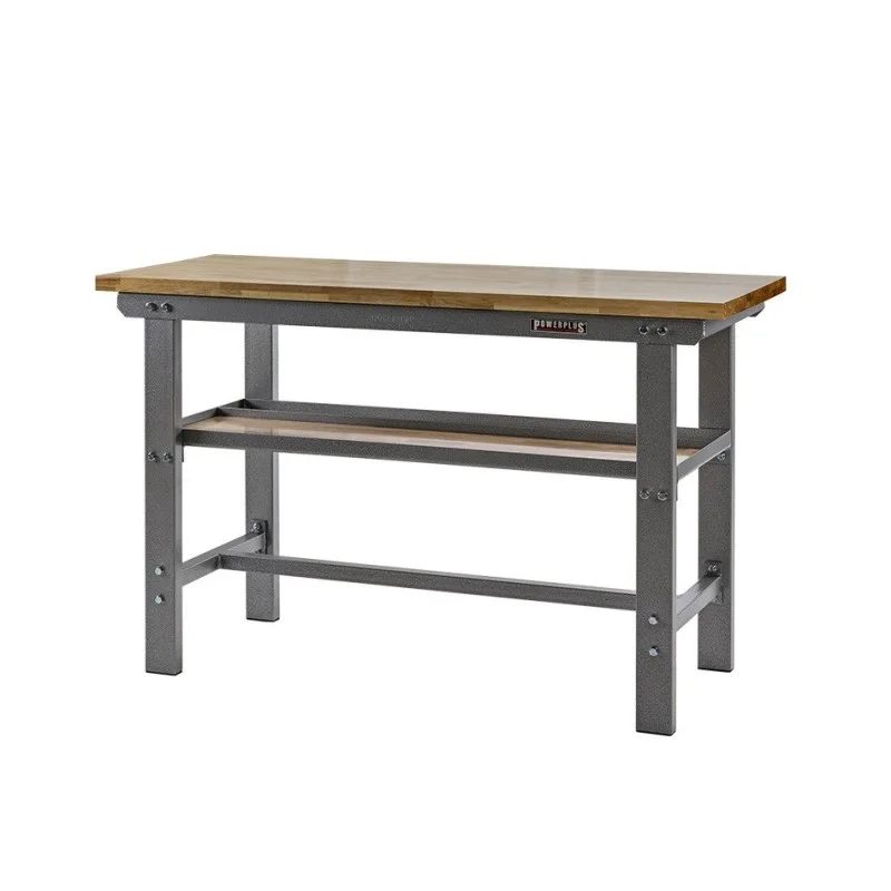 Topkwaliteit werkbank van Powerplustools met oerdegelijk ijzeren frame en poten van dikwandig kokerprofiel (80 x 40 mm.) Deze professionele zware werkbank wordt geleverd inclusief een glad gelakt vingerlas verlijmd hardhouten blad van 3,6 cm. dik. Een ideale stalen werkbank voor school, autogarage, werkplaats, particulier. Deze industrieel inzetbare werkbank is verkrijgbaar in de kleuren rood en zwart. De hoogwaardige poedercoating is UV bestendig en het frame wordt samen geschroefd met gegalvaniseerde bouten en moeren (boutkwaliteit 4.8 )