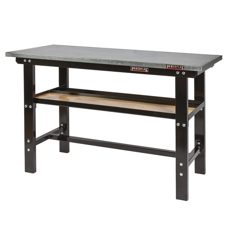 Topkwaliteit werkbank van Powerplustools met oerdegelijk ijzeren frame en poten van dikwandig kokerprofiel (80 x 40 mm.) Deze professionele zware werkbank wordt geleverd inclusief een geperst houten blad met daaromheen een metalen plaat. Een ideale stalen werkbank voor school, autogarage, werkplaats, particulier. Deze industrieel inzetbare werkbank is verkrijgbaar in de kleuren rood en zwart. De hoogwaardige poedercoating is UV bestendig en het frame wordt samen geschroefd met gegalvaniseerde bouten en moeren (boutkwaliteit 4.8 )