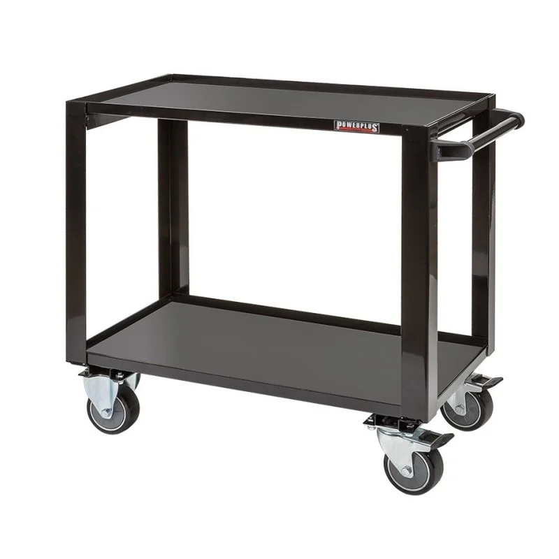 Professionele gereedschapstrolley met 2 vakken in de kleur zwart.