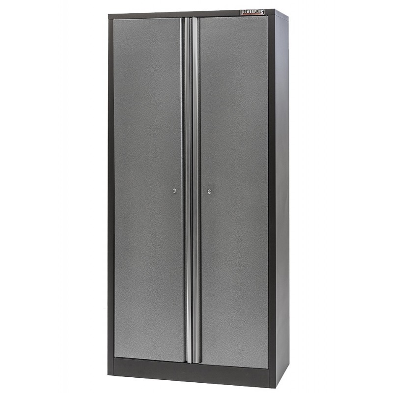 Materiaaldikte: 1 mm. Kleur: grijs / antraciet hamerslag poedercoating. Voorzien van 4 verstelbare legborden afm. 91 x 43 cm. Afm. 200 x 91,5 x 46 cm. ( buitenmaten H x B x D ) Effectieve binnenmaten: 183 x 89,5 x 43 cm.